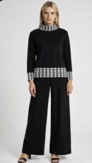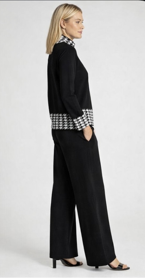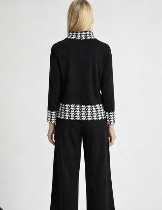 Black co ord set women, houndstooth co ord set, Mynway luxury wear, knit co ord women, office wear co ord set, monochrome women outfit, Pinterest aesthetic co ord, premium women set, wide leg pants set, modern women fashion