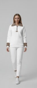 Luxury tracksuit women, white tracksuit set, premium athleisure wear, Mynway luxury clothing, women travel outfit, half zip sweatshirt set, elegant lounge wear, aesthetic winter co-ords, minimalist tracksuit women, modern luxury athleisure, designer casual wear